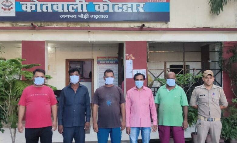 कोटद्वार/पौड़ी गढ़वाल*** कोटद्वार। आम पड़ाव कोटद्वार निवासी सलीम हुसैन द्वारा कोतवाली कोटद्वार में दिए लिखित शिकायती पत्र में बताया गया कि सलाउद्दीन, एहसान, इकराम, इरफान, ईनाम और साहिल नामक व्यक्तियों ने उसके घर में जबरन घुसकर मारपीट एवं गाली-गलौज की गई। कोतवाली कोटद्वार प्रभारी निरीक्षक रमेश तनवार के नेतृत्व में गठित पुत्र टीम द्वारा मौके पर जाकर साक्ष्य संकलन किया गया तथा आसपास के स्थानीय लोगों से महत्वपूर्ण जानकारियां एकत्रित की गईं। साक्ष्यों एवं प्राप्त सूचनाओं के आधार पर प्रकाश में आया कि जमीनी विवाद को लेकर उक्त मारपीट का प्रकरण हुआ। पुष्टि होने पर पुलिस टीम द्वारा त्वरित कार्रवाही करते हुए उक्त प्रकरण से जुड़े 5 अभियुक्तों को गिरफ्तार किया। गिरफ्तार अभियुक्तों में लकड़ी पड़ाव कोटद्वार निवासी सलाउद्दीन पुत्र अलाउद्दीन, एहसान, इकराम, इरफान और ईनाम पुत्र गण अल्लादिया शामिल हैं।
