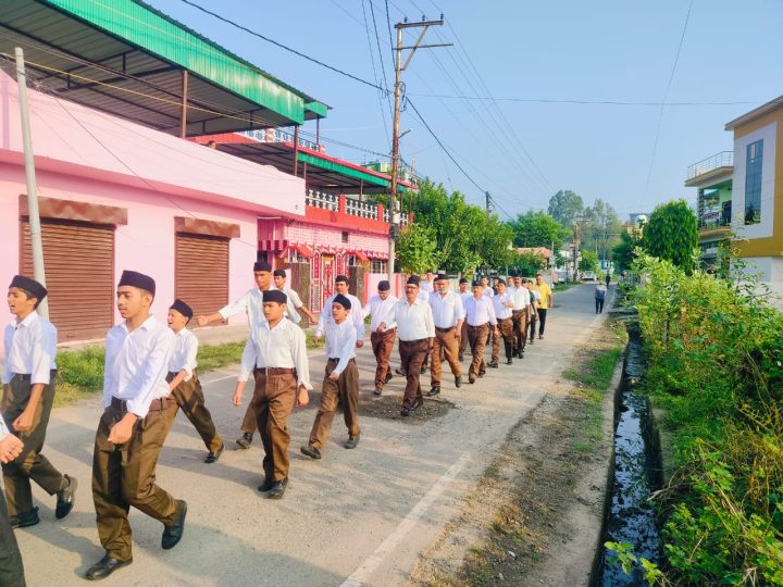 कोटद्वार/पौड़ी गढ़वाल*** राष्ट्रीय स्वयंसेवक संघ जिला कोटवार के सुदर्शन उपनगर की शिवपुर क्षेत्र में आज विजयदशमी उत्सव एवं संघ के शताब्दी वर्ष के निमित्त शस्त्र पूजन एवं एकत्रीकरण का कार्यक्रम आयोजित किया गया। कार्यक्रम का शुभारंभ मुख्य वक्ता संगठनात्मक जिला कोटद्वार के जिलाप्रचारक कमल कार्यक्रम अध्यक्ष विनोद ध्यानी द्वारा शस्त्र पूजन कर किया गया। तत्पश्चात मुख्यवक्ता कमल द्वारा स्वयंसेवकों को शताब्दी वर्ष के निमित्त बधाई देते हुए अपना उद्बोधन दिया । उन्होंने कहा कि राष्ट्रीय स्वयंसेवक संघ विश्व का सबसे बड़ा सामाजिक संगठन है, ओर इस समय नवरात्रि के पश्चात मां भवानी की आराधना के साथ असत्य की सत्य पर जीत हुई है। पिछले 100 वर्षों की यात्रा में कई व्यवधानों के बाद भी अपने लक्ष्य पर संघ आगे बढ़ रहा है। संघ का मुख्य उद्देश्य भारत को परम वैभव तक पहुंचाना है और इसके लिए स्वयंसेवक लगातार कार्य कर रहे हैं। जिस प्रकार भगवान श्रीराम ने 14 वर्षों का वनवास पूर्ण कर सत्य की असत्य पर जीत के उपरांत हिंदुत्व का दीपक प्रज्वलित किया था उसी प्रकार वर्तमान समय में संघ की धारा किरण के माध्यम से स्वयंसेवक समाज में प्रत्येक वर्ग में कार्य कर रहे हैं। इसके पश्चात स्वयंसेवकों द्वारा शिवपुर बस्ती के मुख्यमार्ग पर पथ संचालन किया गया। इस अवसर पर जिला प्रचारक कमल , नगर/खंड प्रचारक गौरव, नगर कार्यवाह प्रशांत कुकरेती, सुदर्शन उपनगर कार्यवाह विजेंद्र मेंदोला, सहकार्यवाह रोहित बलोदी, मनमोहन सिंह , राकेश चमोली एवं 60 से अधिक स्वयंसेवक गणवेश में उपस्थित रहे।