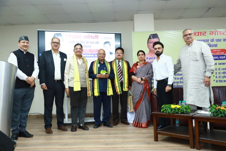हल्द्वानी/उत्तराखंड*** मुख्यमंत्री पुष्कर सिंह धामी के नेतृत्व में राज्य सरकार के कार्यकाल में लिए गए निर्णयों और नीतियों पर विचार-विमर्श कार्यक्रम “धामी सरकार के चार वर्ष: उपलब्धियाँ” शीर्षक से आयोजित किया गया। इस चर्चा में विभिन्न विश्वविद्यालयों के कुलपतियों, शिक्षाविदों एवं जनप्रतिनिधियों ने भाग लिया।
