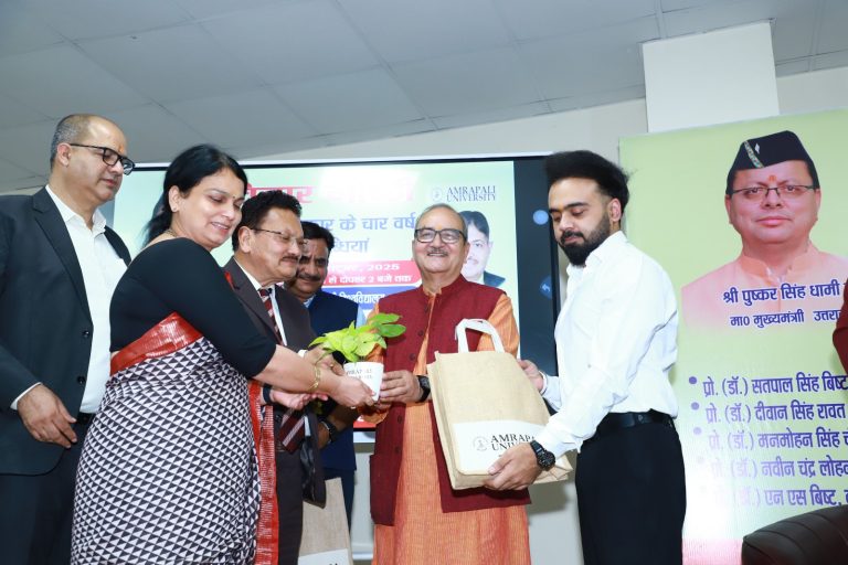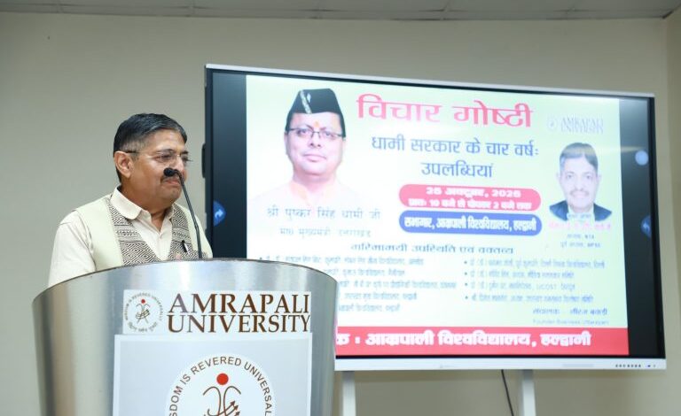 प्रो. (डॉ.) एन. एस. बिष्ट, कुलपति, आम्रपाली विश्वविद्यालय, हल्द्वानी, ने कहा कि धामी सरकार की नीति और नियत स्पष्ट है, और राज्य हर क्षेत्र में नए विकास के आयाम स्थापित कर रहा है।