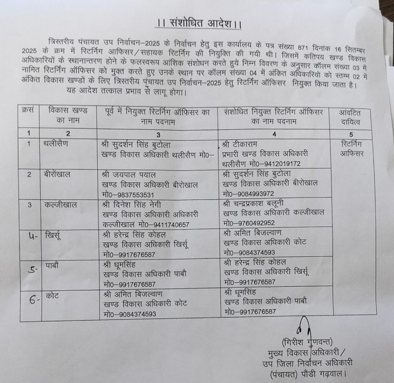 पौड़ी गढवाल: त्रिस्तरीय पंचायत उप निर्वाचन-2025 हेतु आदर्श आचार संहिता प्रभावी,,,।