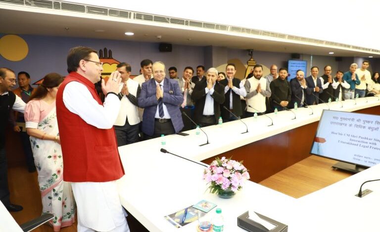 नई दिल्ली/उत्तराखंड*** नई दिल्ली स्थित उत्तराखण्ड निवास में उत्तराखण्ड राज्य की रजत जयंती वर्ष के अवसर पर मुख्यमंत्री पुष्कर सिंह धामी ने प्रवासी उत्तराखण्डी अधिवक्ताओं के साथ संवाद किया। इस दौरान उन्होंने राज्य के विकास हेतु अधिवक्ताओं के साथ गहन विचार-मंथन किया। इस दौरान उन्होंने कानून व्यवस्था को सुदृढ़, पारदर्शी और प्रभावी बनाने के लिए सरकार द्वारा किए जा रहे प्रयासों और नीतिगत पहलों की जानकारी साझा की।