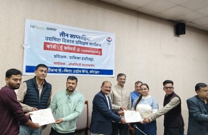 कोटद्वार/पौड़ी गढ़वाल*** जिला उद्योग केंद्र कोटद्वार द्वारा संचालित 21 दिवसीय ई–कॉमर्स प्रशिक्षण कार्यक्रम का सफलतापूर्वक समापन हो गया है। कार्यक्रम में कुल 28 युवाओं ने प्रतिभाग कर ई–कॉमर्स से संबंधित विभिन्न तकनीकी कौशलों का प्रशिक्षण प्राप्त किया।