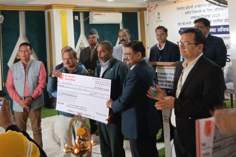 कोटद्वार/पौड़ी गढ़वाल*** भारत सरकार के वित्त मंत्रालय द्वारा संचालित आपकी पूंजी, आपका अधिकार अभियान के अंतर्गत मंगलवार को मिक्स वेडिंग प्वाइंट, देवी रोड कोटद्वार में विशेष शिविर आयोजित किया गया। शिविर में विभिन्न बैंकों के लंबित वित्तीय दावों का निस्तारण करते हुए पात्र लाभार्थियों को चेक वितरित किए गए। जिले में अब तक विभिन्न बैंकों द्वारा कुल 362 लंबित दावों पर 4.22 करोड़ रुपये की राशि उनके वास्तविक हकदारों तक पहुंचाई जा चुकी है।