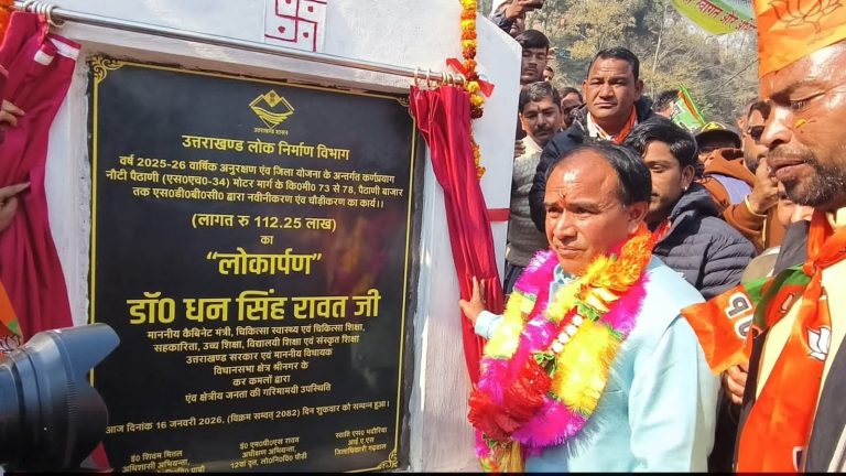पौड़ी गढ़वाल/उत्तराखंड*** पैठाणी स्थित पौराणिक एवं आस्था के प्रमुख केंद्र राहु मंदिर के सौंदर्यीकरण एवं विकास कार्यों हेतु 1 करोड़ 90 लाख की लागत से प्रस्तावित योजना का क्षेत्रीय विधायक एवं कैबिनेट मंत्री डॉ. धन सिंह रावत द्वारा विधिवत भूमि पूजन किया गया। इस अवसर पर पैठाणी आगमन पर क्षेत्रवासियों द्वारा कैबिनेट मंत्री का भव्य रैली के माध्यम से गर्मजोशी से स्वागत किया गया।