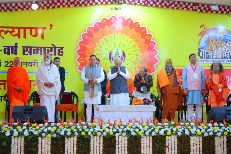 ऋषिकेश/उत्तराखंड*** केन्द्रीय गृह एवं सहकारिता मंत्री अमित शाह तथा उत्तराखण्ड के मुख्यमंत्री पुष्कर सिंह धामी ने गीता प्रेस, गोरखपुर द्वारा प्रकाशित मासिक पत्रिका ‘कल्याण’ के शताब्दी अंक का विधिवत विमोचन किया। इस अवसर पर गुजराती भाषा में प्रकाशित ‘आरोग्य अंक’ का भी लोकार्पण किया गया। समारोह में उपस्थित विशिष्ट अतिथियों का उत्तरीय एवं पुष्पगुच्छ भेंट कर आत्मीय स्वागत किया गया।