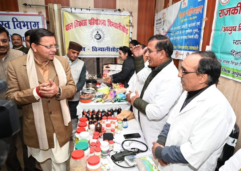 चिन्यालीसौड़/उत्तराखंड*** मुख्यमंत्री पुष्कर सिंह धामी ने गुरुवार को विकास खंड परिसर चिन्यालीसौड़ में आयोजित जन-जन की सरकार,जन -जन के द्वार कार्यक्रम में विभागीय स्टालों का निरीक्षण कर कार्यक्रम का शुभारंभ किया। मुख्यमंत्री ने ग्रामीणों की समस्या एवं शिकायतें सुनते हुए मौके पर ही अधिकारियों की उपस्थिति में अधिकांश समस्याओं का निस्तारण किया।