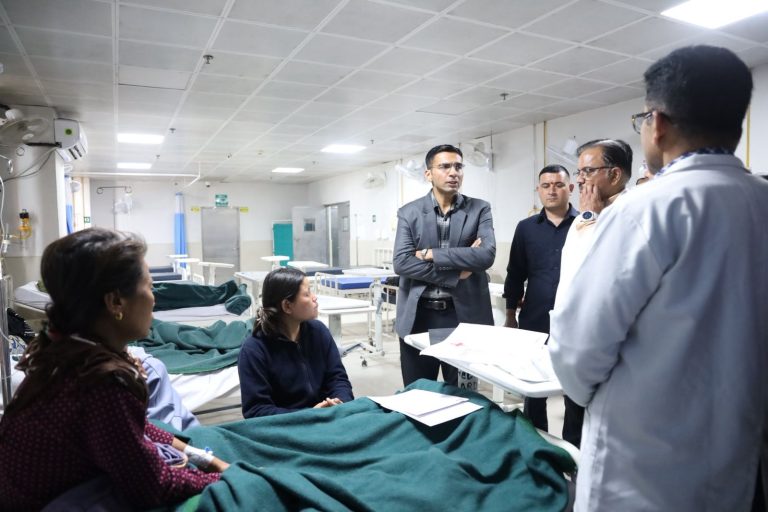 देहरादून/उत्तराखंड*** जिलाधिकारी सविन बसंल ने आज जिला चिकित्सालय कोरोनेशन का निरीक्षण कर व्यवस्थाएं जानी। इस दौरान जिलाधिकारी ने निर्माणाधीन ब्लड बैंक के कार्यों का निरीक्षण करते हुए कार्यदायी संस्था को 15 मार्च 2026 तक कार्य पूर्ण करने के निर्देश। डीएम ने सेन्ट्रल पैथोलॉजी का समय आज से ही 11 बजे से 1 घंटा बढकार अब 12 बजे तक करने के निर्देश दिए। चन्दन लैब के निरीक्षण के दौरान 3 माह के दिन-रात्रि में लिए गए सैम्पल की रिपोर्ट तलब करते हुए अनुबन्ध के अनुसार कार्य न किये जाने पर आधा भुगतान रोकने के निर्देश दिए।