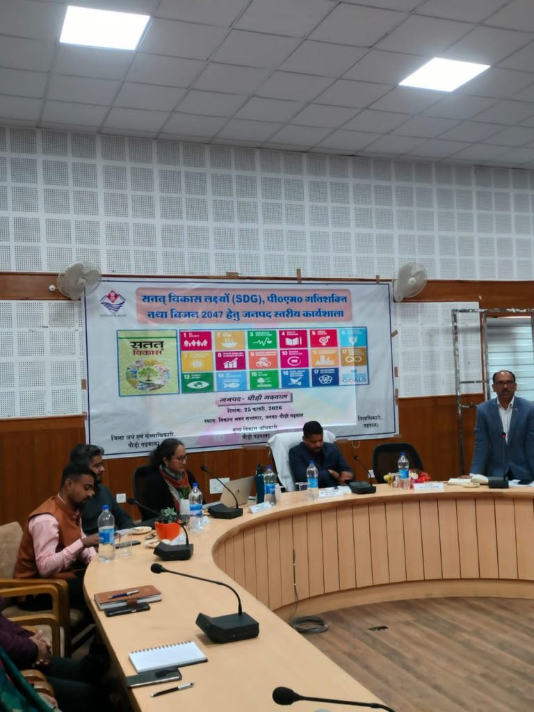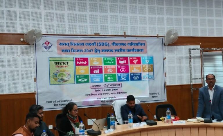 पौड़ी गढ़वाल/उत्तराखंड*** जिला अर्थ एवं संख्याधिकारी कार्यालय, पौड़ी गढ़वाल के तत्वावधान में आज विकास भवन सभागार, पौड़ी में सतत विकास लक्ष्यों, डाटा इकोसिस्टम, पीएम गतिशक्ति तथा विजन-2047 विषयों पर एक दिवसीय कार्यशाला का आयोजन मुख्य विकास अधिकारी गिरीश गुणवंत अध्यक्षता में किया गया। कार्यशाला का उद्देश्य जनपद स्तर पर सतत विकास लक्ष्यों की प्राप्ति हेतु विभागीय समन्वय, डाटा आधारित योजना निर्माण तथा दीर्घकालिक विकास रणनीति को सुदृढ़ करना रहा।