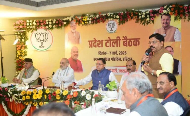 हरिद्वार/उत्तराखंड*** केंद्रीय गृह मंत्री एवं पूर्व राष्ट्रीय अध्यक्ष अमित शाह की मौजूदगी में आज भाजपा की प्रदेश टोली बैठक संपन्न हुई। जिसमें चुनावी दृष्टि से कार्यकर्ताओं की संतुष्टि और संगठन विस्तार पर विशेष चर्चा हुई। वहीं 27 के चुनाव दृष्टिगत गृह मंत्री का प्रदेश नेतृत्व को विजयी मार्गदर्शन प्राप्त हुआ।