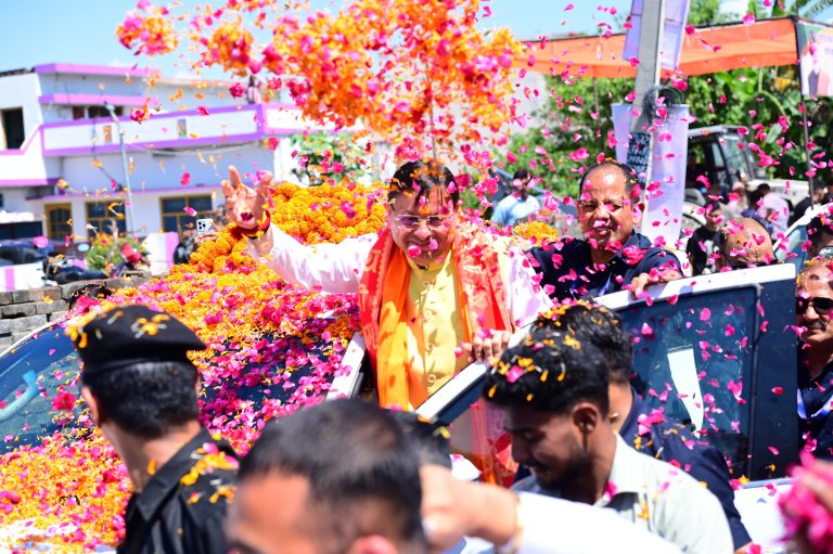 मुख्यमंत्री का रोड शो में जनता व जनप्रतिनिधियों ने पुष्पवर्षा कर भव्य स्वागत किया।