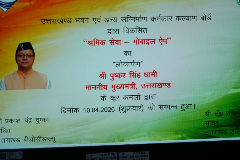 मुख्यमंत्री पुष्कर सिंह धामी ने किया उत्तराखंड भवन एवं अन्य सन्निर्माण कर्मकार कल्याण बोर्ड द्वारा विकसित श्रमिक सेवा मोबाइल एप का लोकार्पण