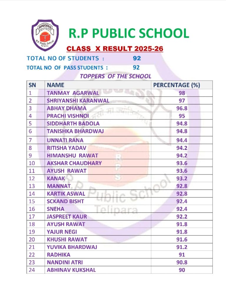 कोटद्वार: आर.पी. पब्लिक स्कूल ने सीबीएसई हाई स्कूल बोर्ड में 100% रिजल्ट से परचम लहराया,30 बच्चों ने 90% से अधिक अंक प्राप्त किया,,,।