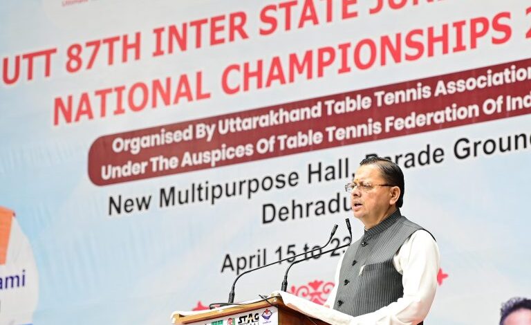 मुख्यमंत्री धामी ने 87वें इंटर स्टेट जूनियर एवं यूथ नेशनल टेबल टेनिस चैंपियनशिप का शुभारंभ किया,,,।