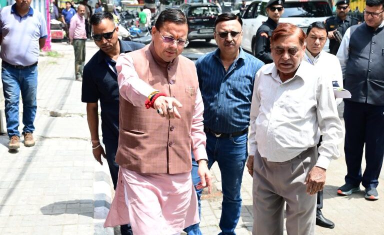 सीएम हेल्पलाइन पर दर्ज शिकायत की पड़ताल करने खुद मौके पर पहुंचे सीएम धामी,,,।