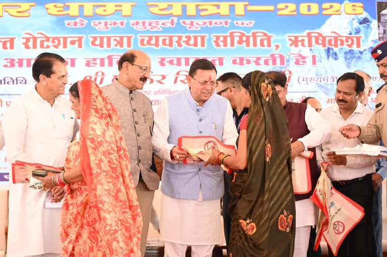 ऋषिकेश/उत्तराखंड*** मुख्यमंत्री पुष्कर सिंह धामी ने शनिवार को ऋषिकेश में संयुक्त रोटेशन यात्रा व्यवस्था समिति द्वारा आयोजित चारधाम यात्रा-2026 के शुभारम्भ कार्यक्रम में प्रतिभाग किया। इस दौरान मुख्यमंत्री ने चार धाम जाने वाली बसों को हरी झंडी दिखाकर रवाना किया। उन्होंने श्रद्धालुओं के लिए स्थापित निशुल्क स्वास्थ्य शिविर का भी निरीक्षण किया।